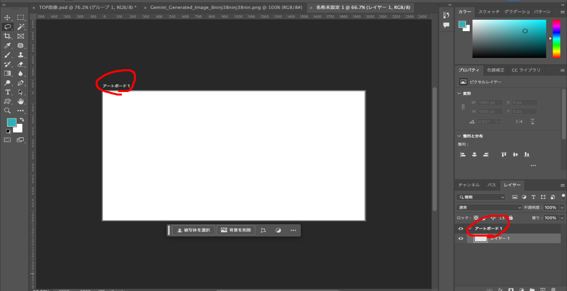 アートボードはPhotoshop上で複数の画面を編集するための機能です。