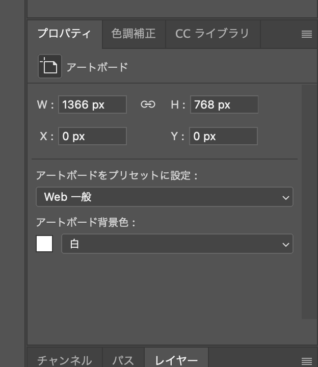 アートボードを選んだ状態で、プロパティにも注目してみましょう。