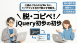 よくあるミスは、jQuery本体よりも先にプラグインや自分のJSを読み込んでしまうことです。「まずはjQuery」と覚えておきましょう。