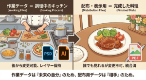 作業データは「未来の自分のため」に、配布用データは「届ける相手のため」にある。そう考えると、使い分ける理由が明確になります。